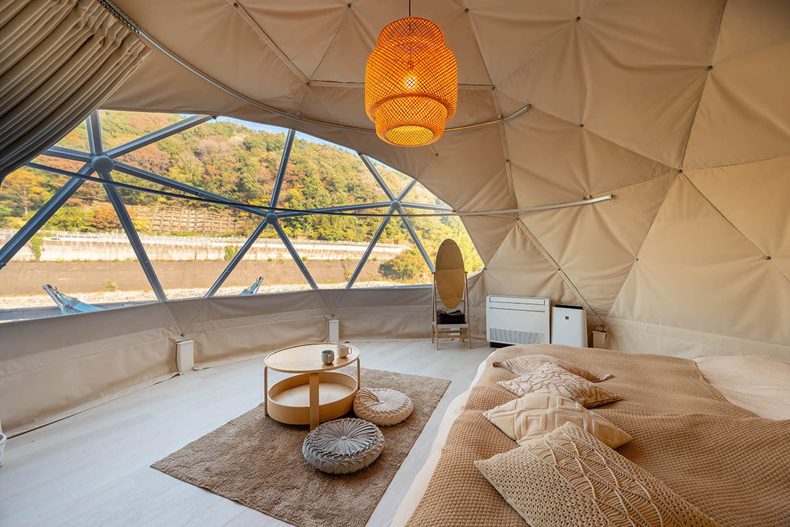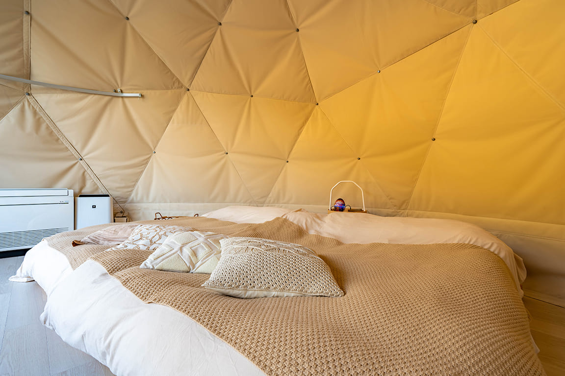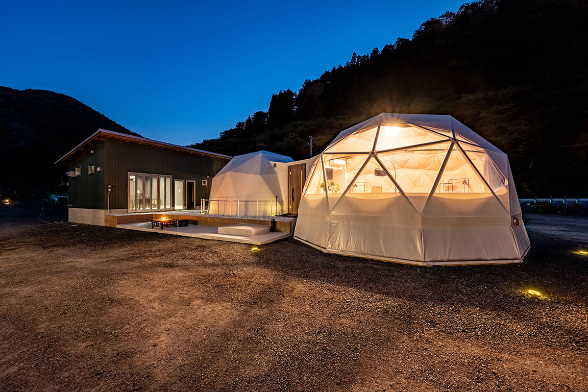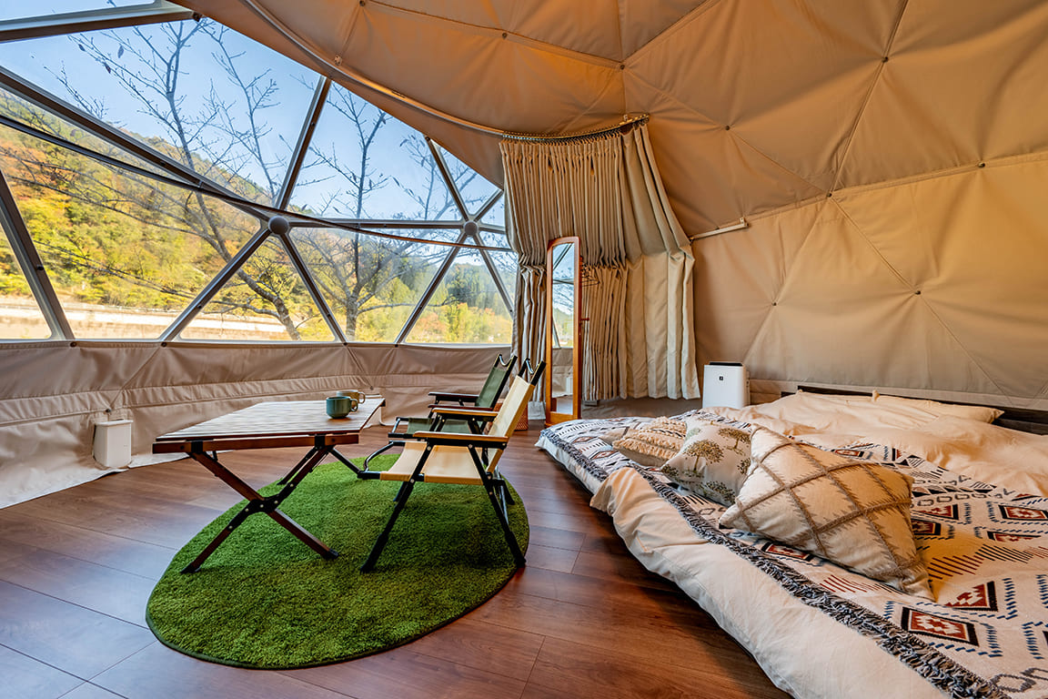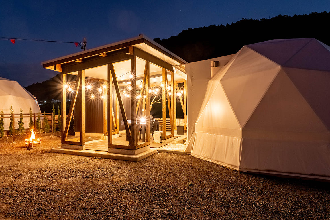 You can enjoy relaxing glamping at one of our dome-shaped tents exclusive to 7 groups a day!
