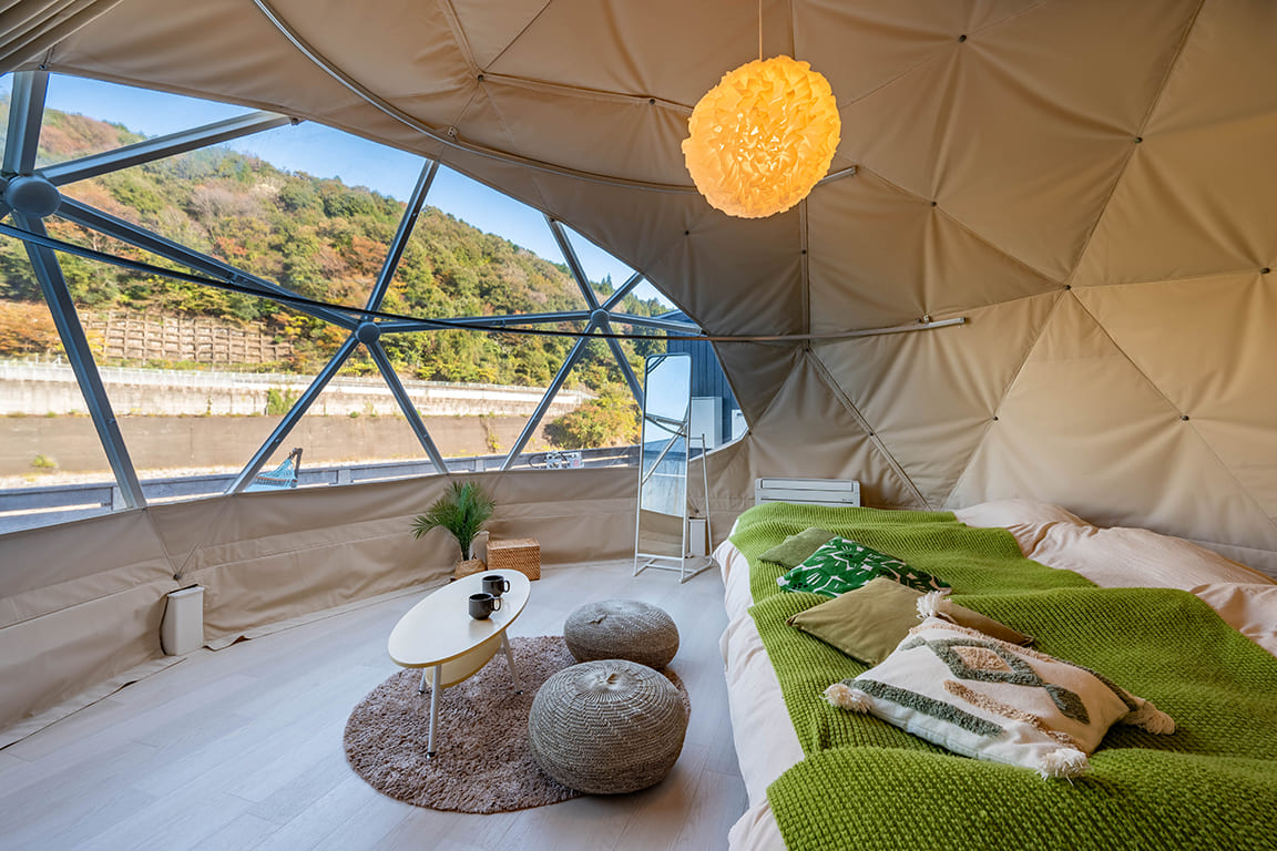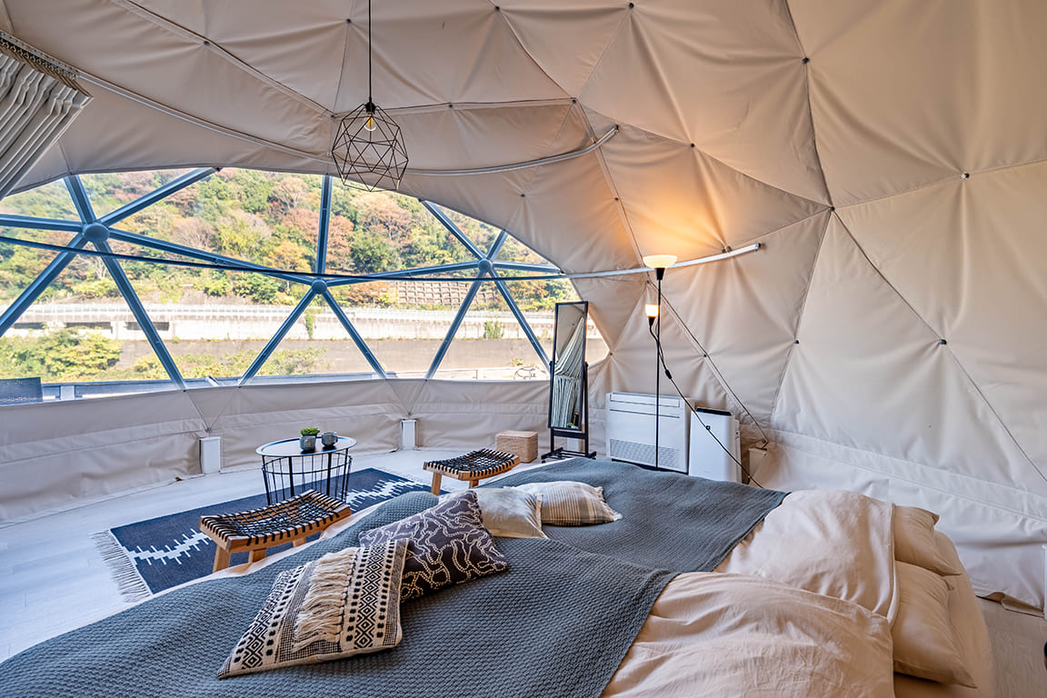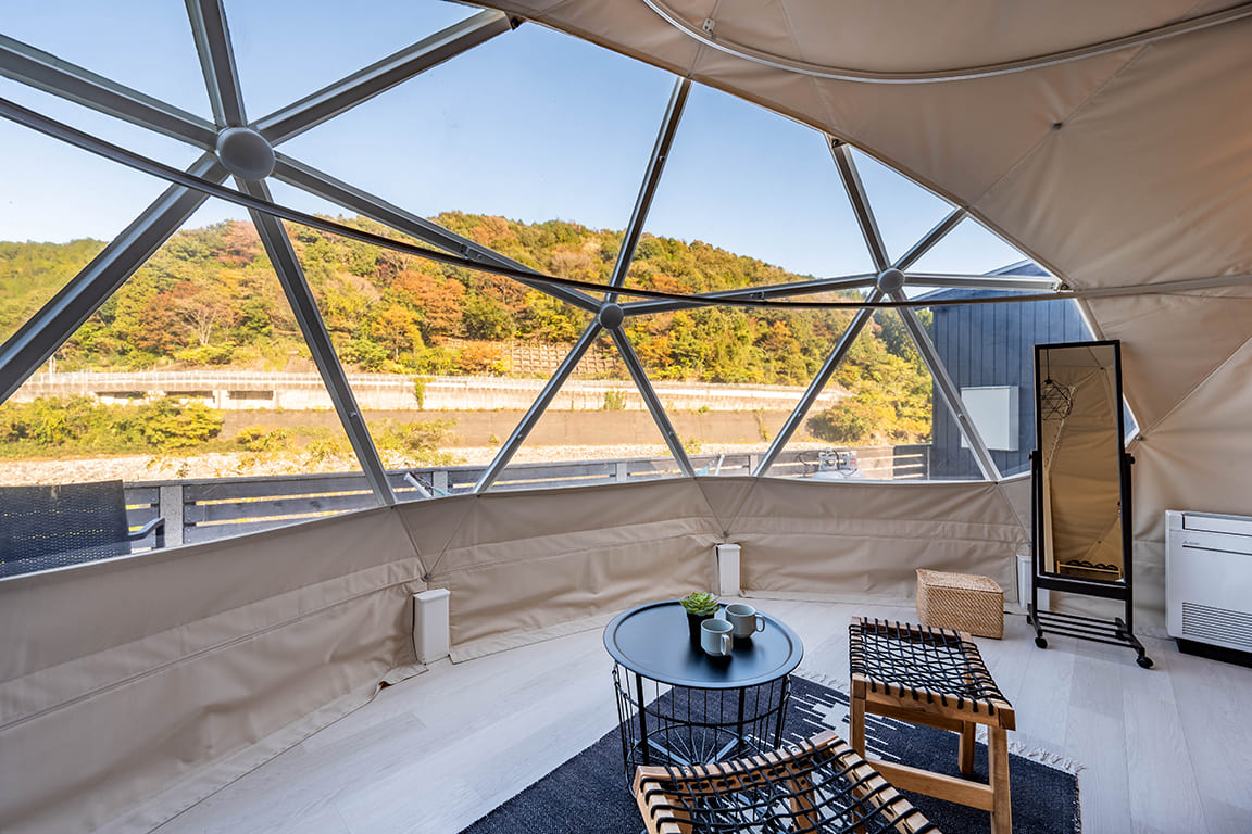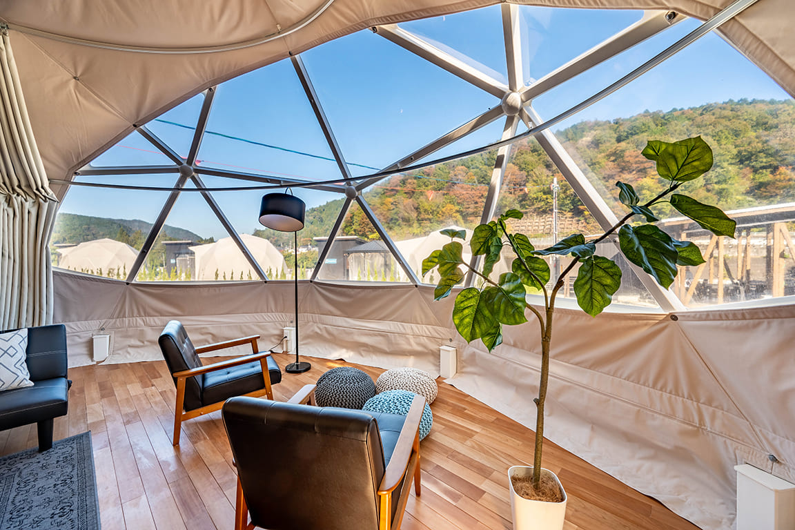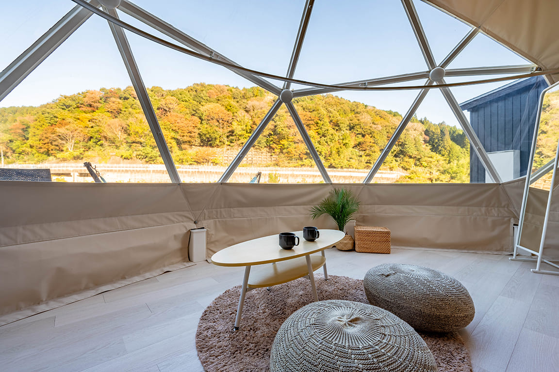 You can enjoy relaxing glamping at one of our dome-shaped tents exclusive to 7 groups a day!