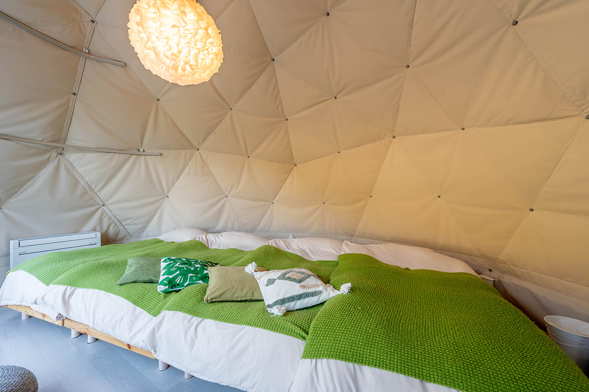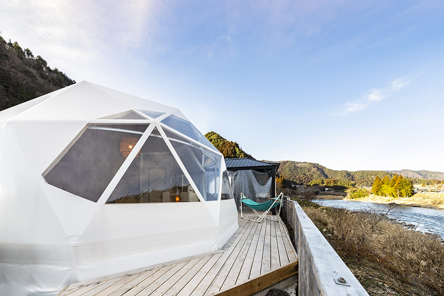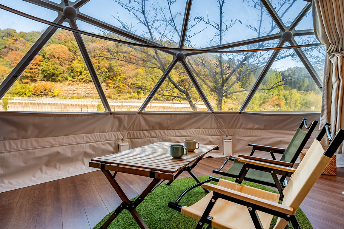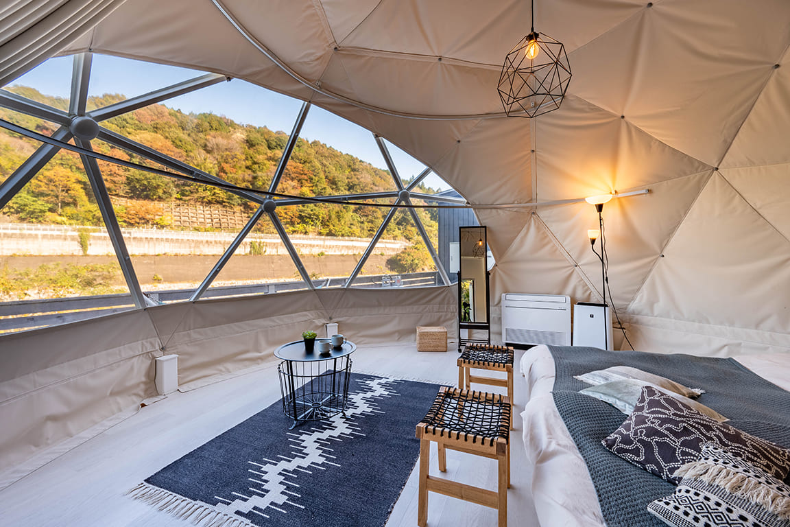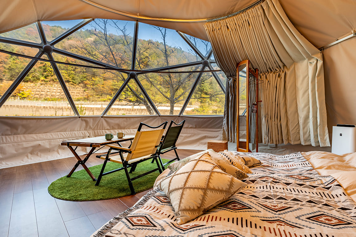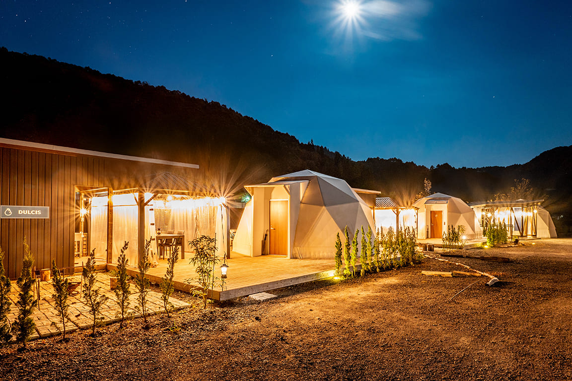 You can enjoy relaxing glamping at one of our dome-shaped tents exclusive to 7 groups a day!