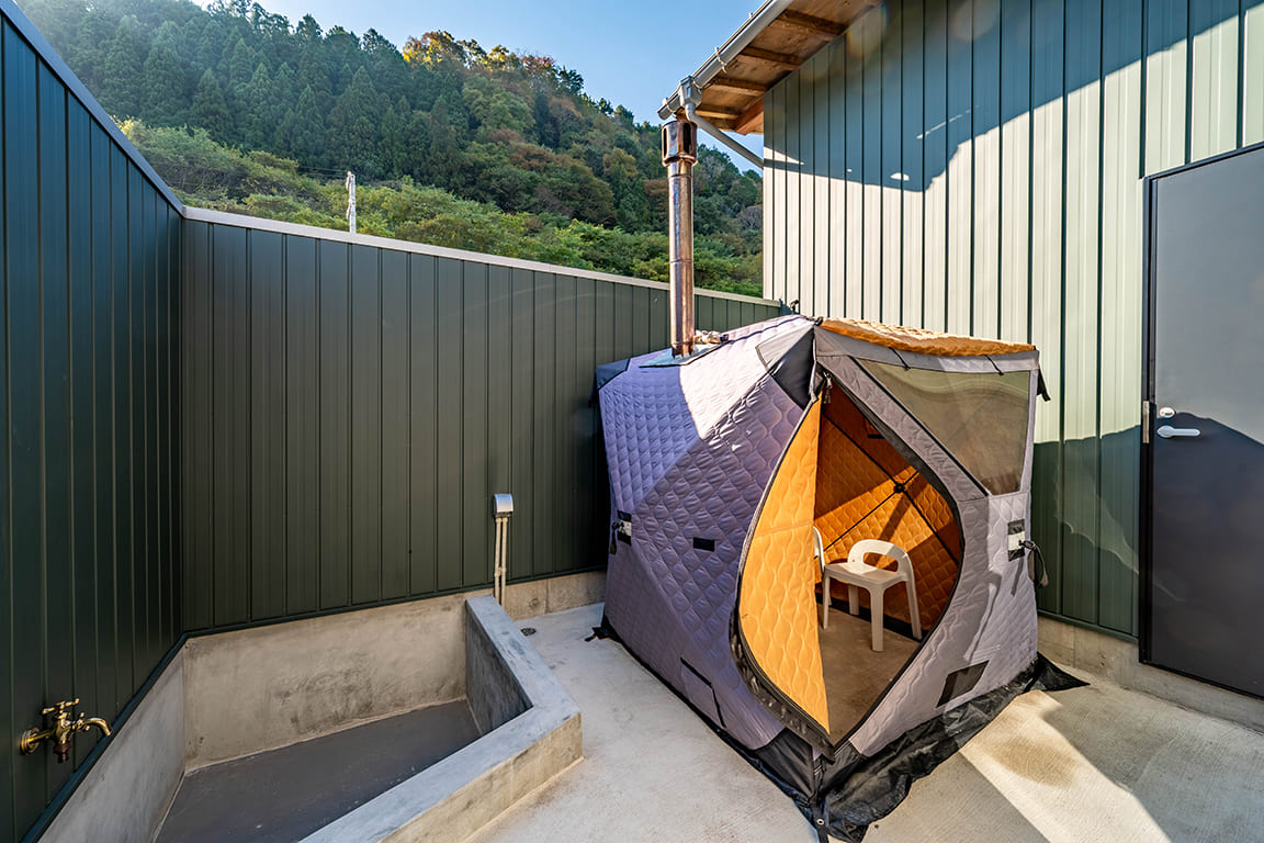 From August, we introduced a new type of room “Twin Dome,” where two dome-shaped tents are connected, and it can accommodate up to 12 people. It is equipped with a private dining space, tent sauna, cold bath and “Totonoi” space, so a large group can fully enjoy a stay as much as they like.